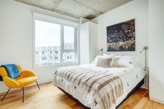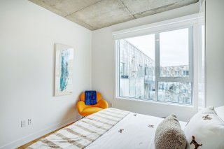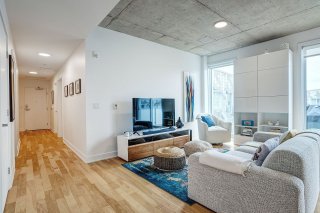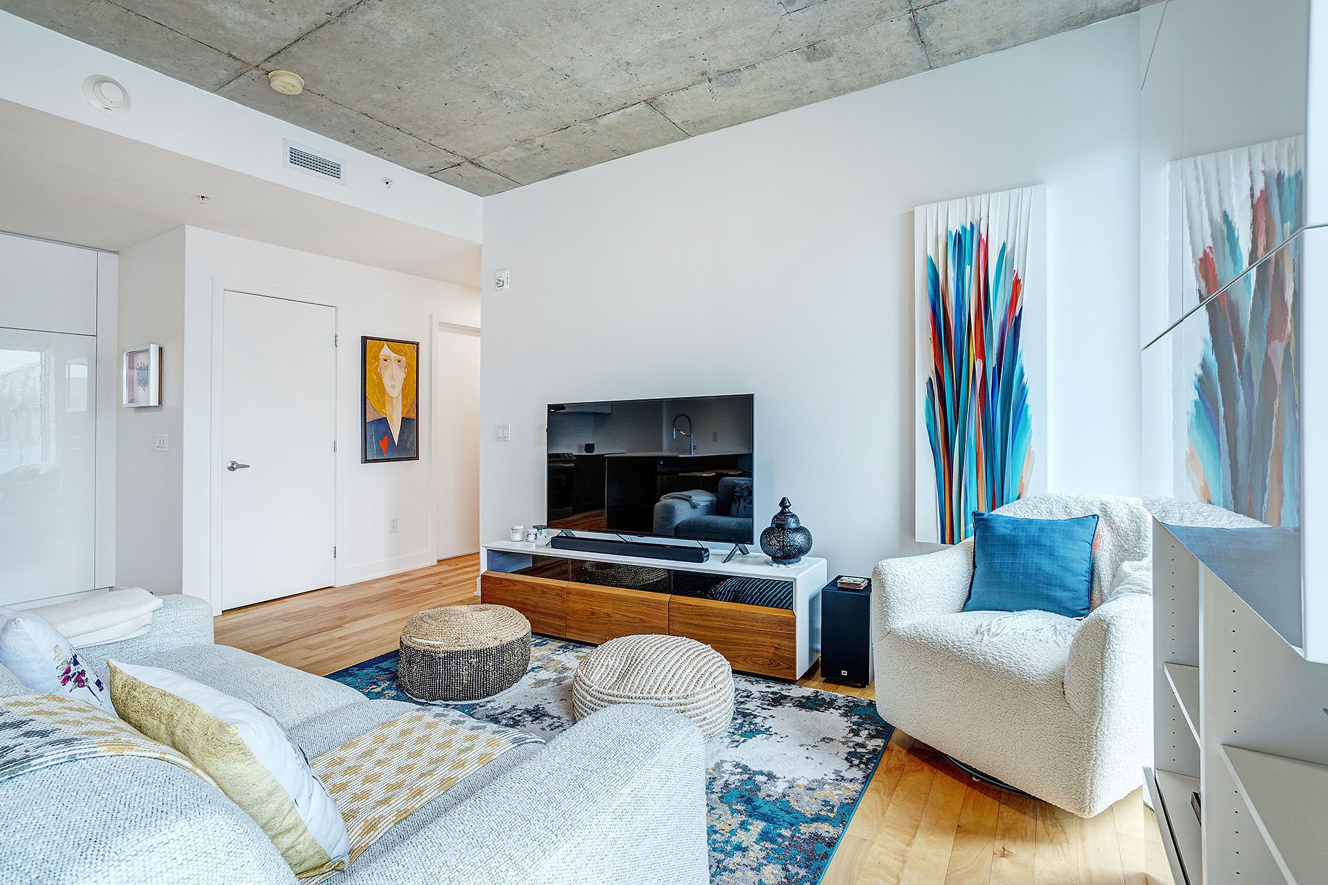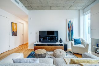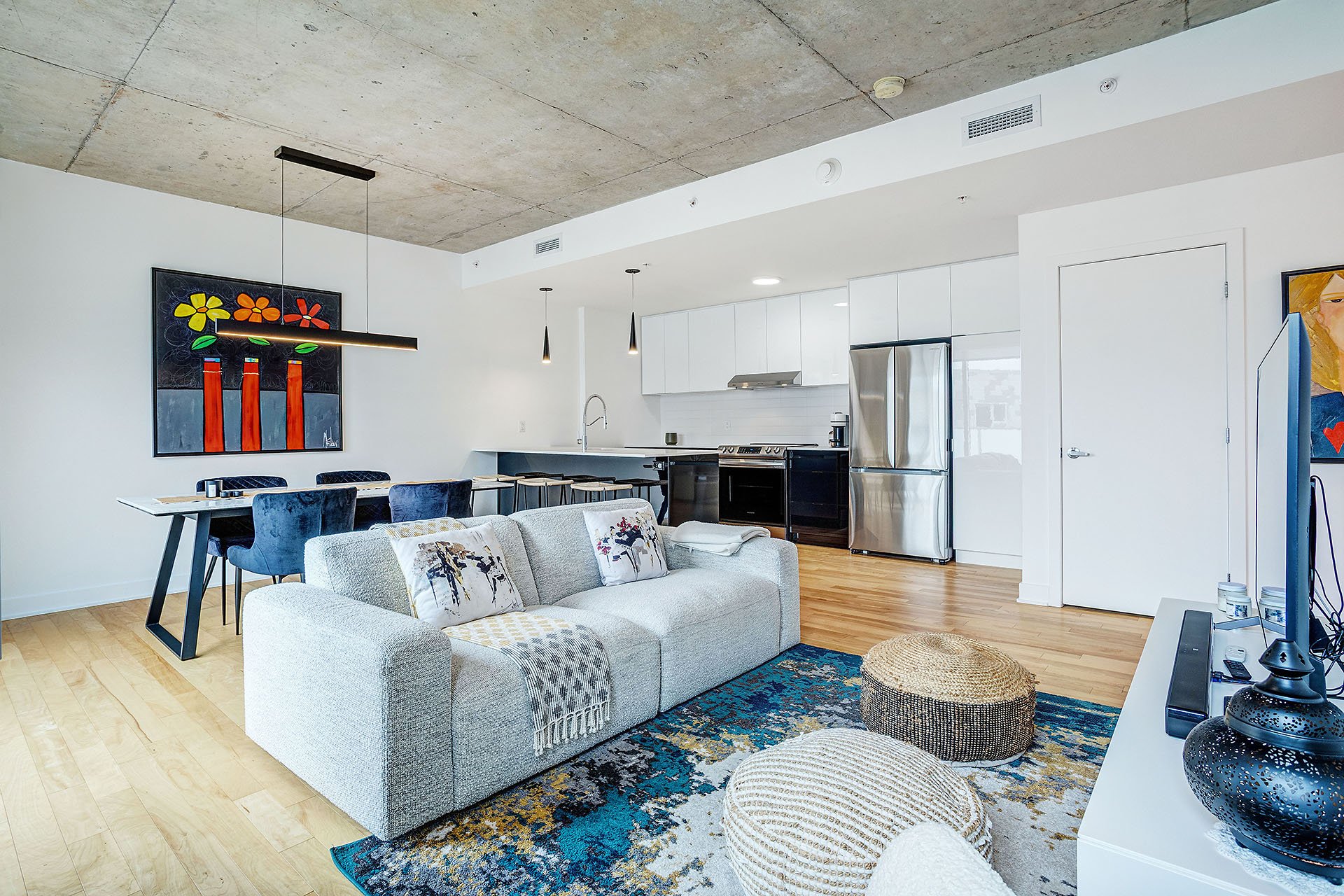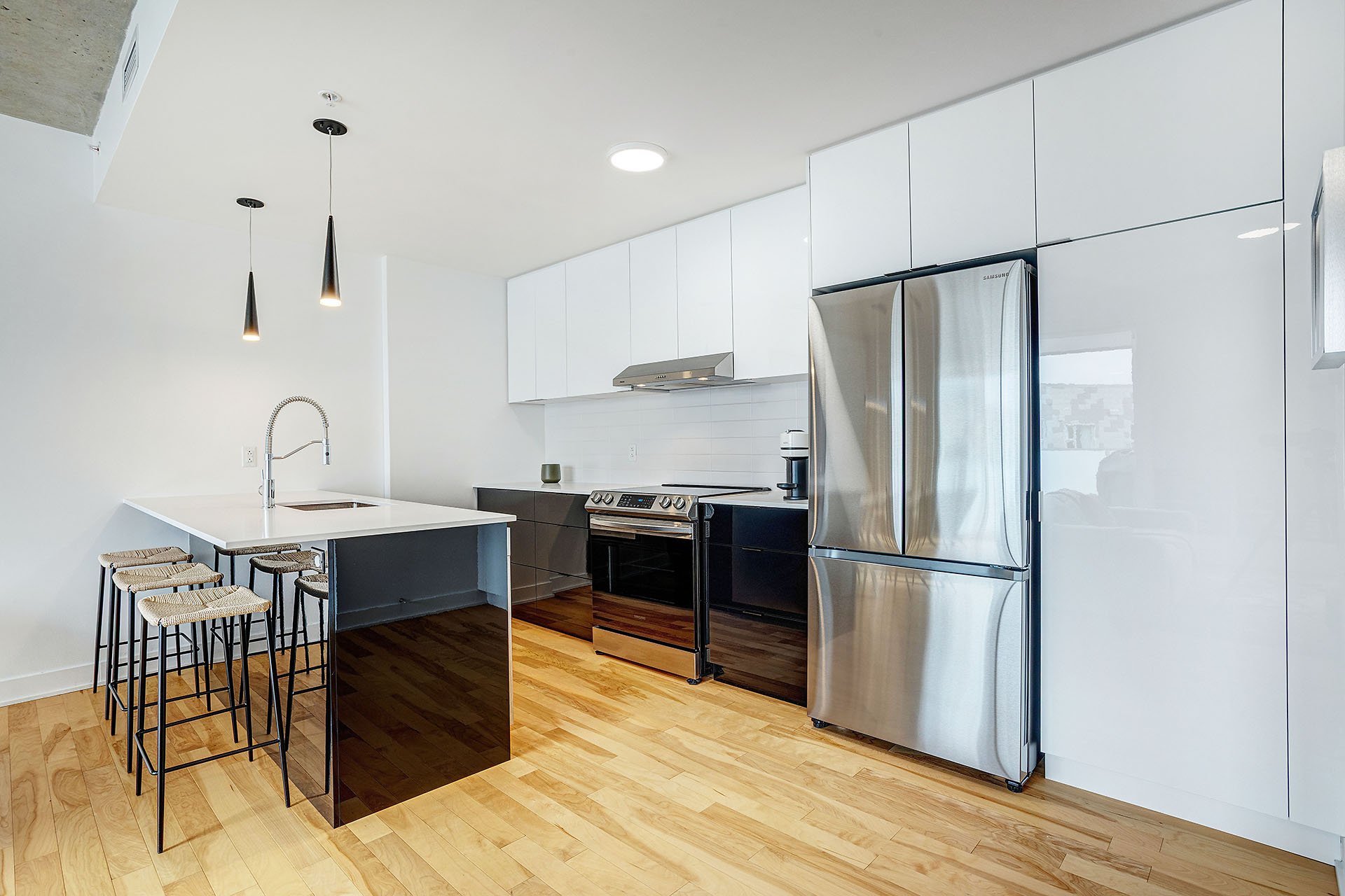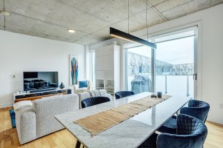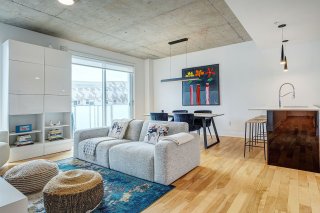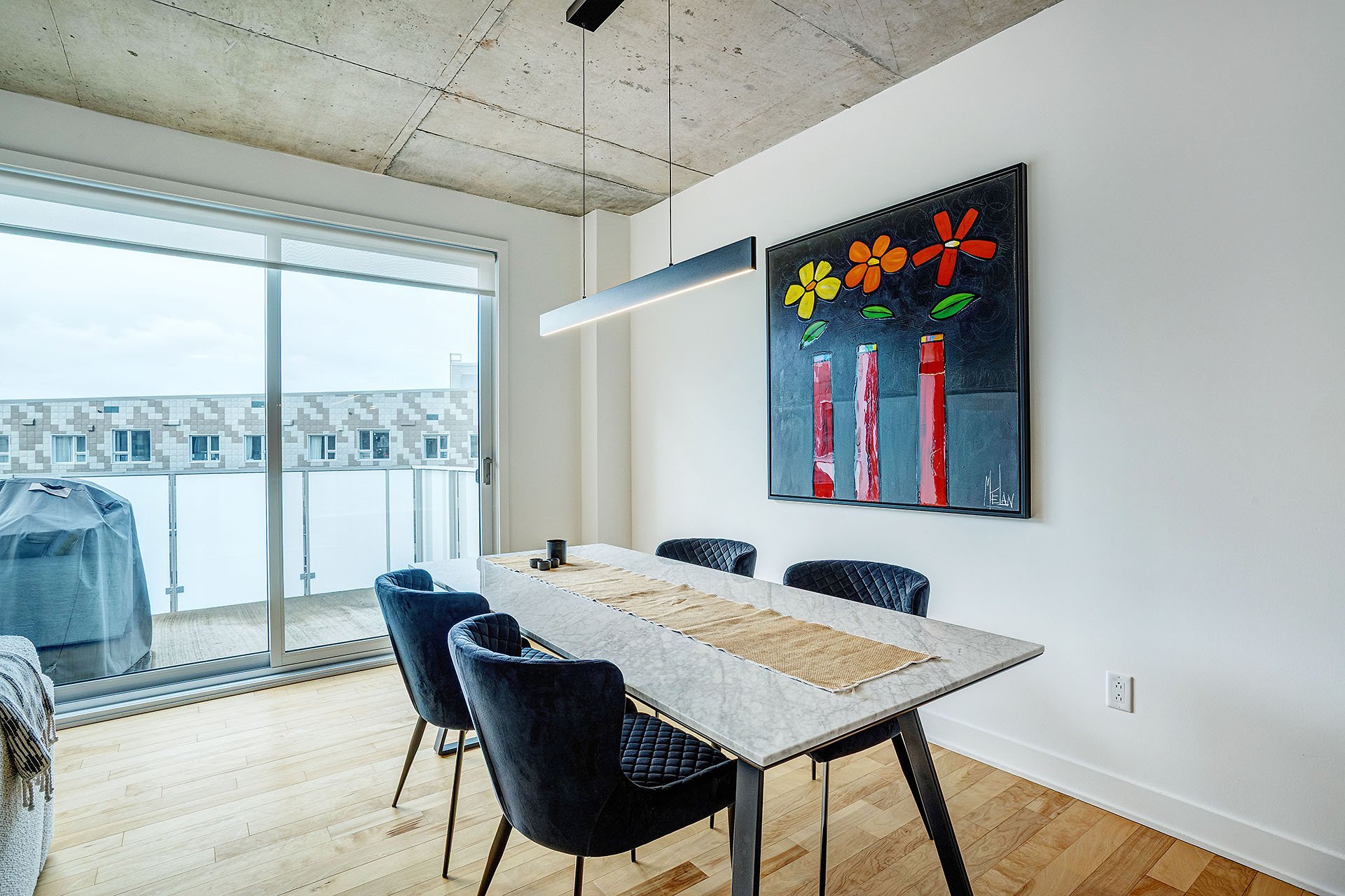 Condo coup de coeur aux Shops Angus ! ! Situé au 6e et dernier étage d'un immeuble certifié LEED, ce condo à aire ouverte offre salon, cuisine et salle à manger avec plafonds de 9 pieds et grandes fenêtres orientées au sud. Profitez d'un balcon-terrasse donnant sur la cour intérieure, de 2 chambres avec rangements, d'un locker et d'un garage inclus. Un quartier exceptionnel, calme et animé à la fois, à deux pas de tous les commerces et services des Shops Angus. Copropriété très bien gérée.