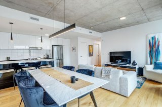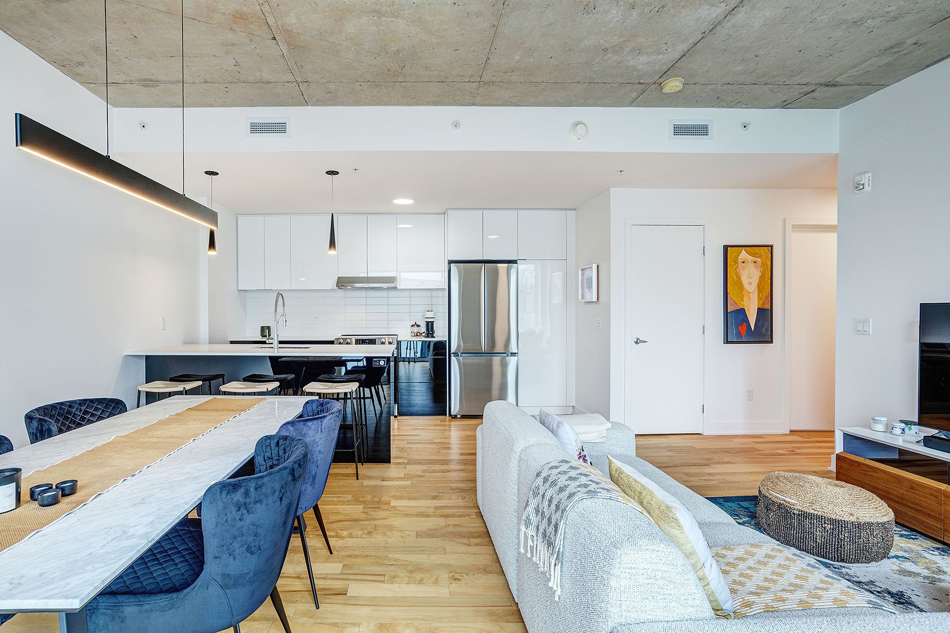 - Aire ouverte salon/cuisine/salle à manger, cuisine avec