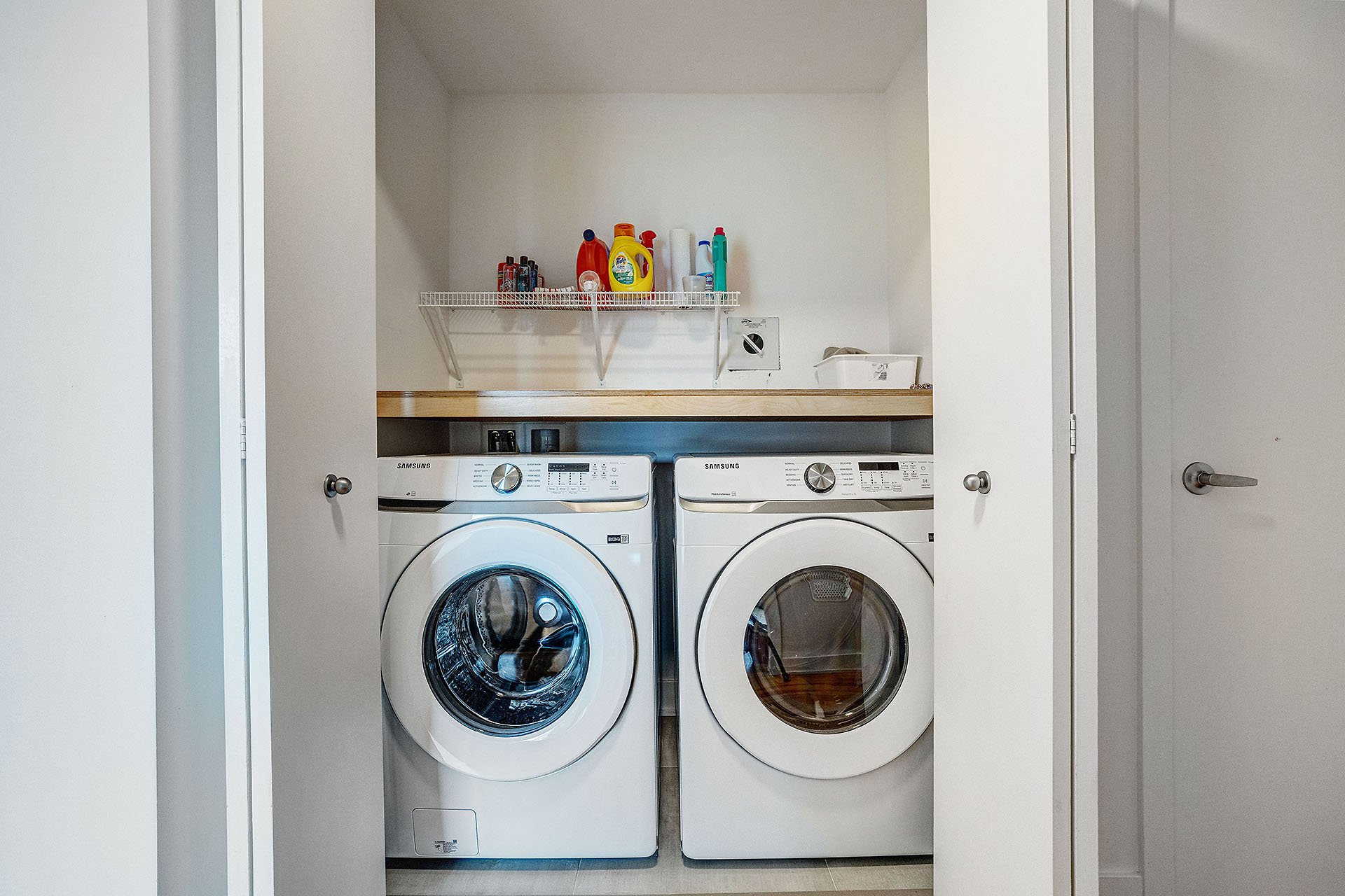 Inclus                                        : cuisinière, frigidaire, laveuse-sécheuse, lave-vaisselle Luminaires Toiles solaires Rangements (PAX) Commode