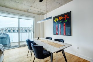 îlot, salle à manger donnant sur balcon 8x9 pi